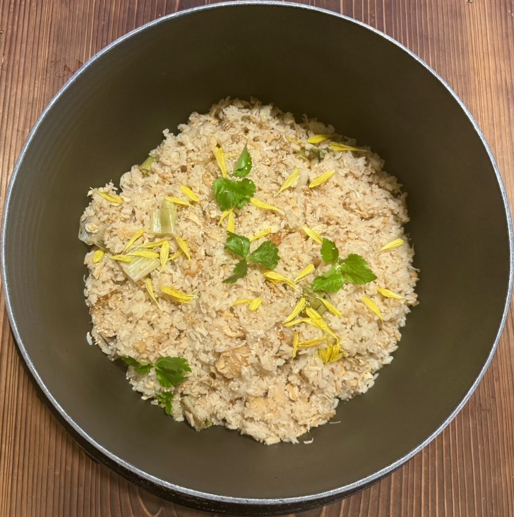 北海道産の帆立を合わせて海鮮風味もプラスしたブランシェット流の根深ご飯です。