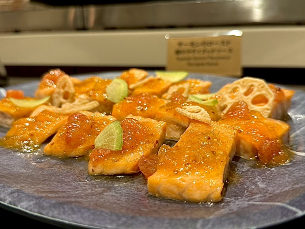 オーブンでじっくりと時間をかけてローストしたサーモンは、ふっくらでジューシーな食感に。